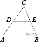 В треугольнике ABC известно, что DE — средняя линия. Площадь треугольника CDE равна 94. Найдите площадь треугольника ABC.