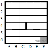 6. Исполнитель МАШИНКА «живет» в ограниченном прямоугольном лабиринте на клетчатой плоскости, изображенном на рисунке. Серые клетки — возведенные стены, светлые — свободные клетки, по которым МАШИНКА может свободно передвигаться. По краю поля лабиринта также стоит возведенная стенка с нанесенными номерами и буквами для идентификации клеток в лабиринте.