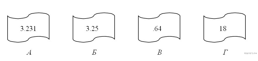 Задача 1. На месте преступления были обнаружены четыре обрывка бумаги. Следствие установило, что на них записаны фрагменты одного IP-адреса. Криминалисты обозначили эти фрагменты буквами А, Б, В и Г. Восстановите IP-адрес. В ответе укажите последовательность букв, обозначающих фрагменты, в порядке, соответствующем IP-адресу.